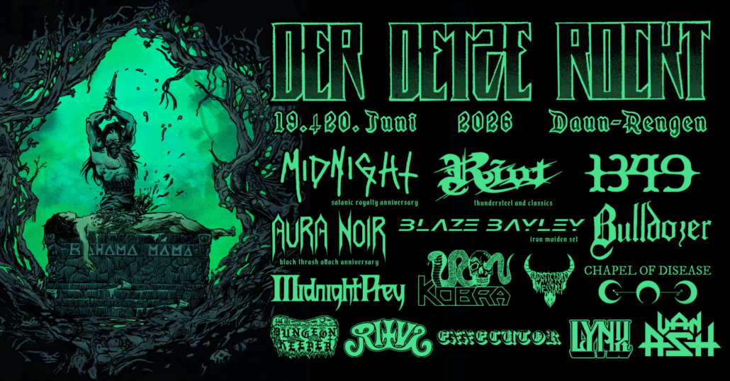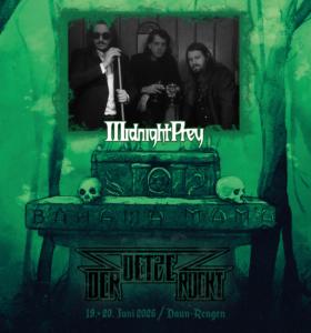 Wir freuen uns riesig, unseren Headliner für Freitag bekanntzugeben! Die legendären Cleveland Black ’n‘ Rollers feiern das 15-jährige Jubiläum ihres Albums „Satanic Royalty“ beim Detze. Seit über 20 Jahren ist Midnight für ihre außergewöhnlichen Live-Shows bekannt und der Gig auf dem Detze wird 2026 zum absoluten Highlight!
